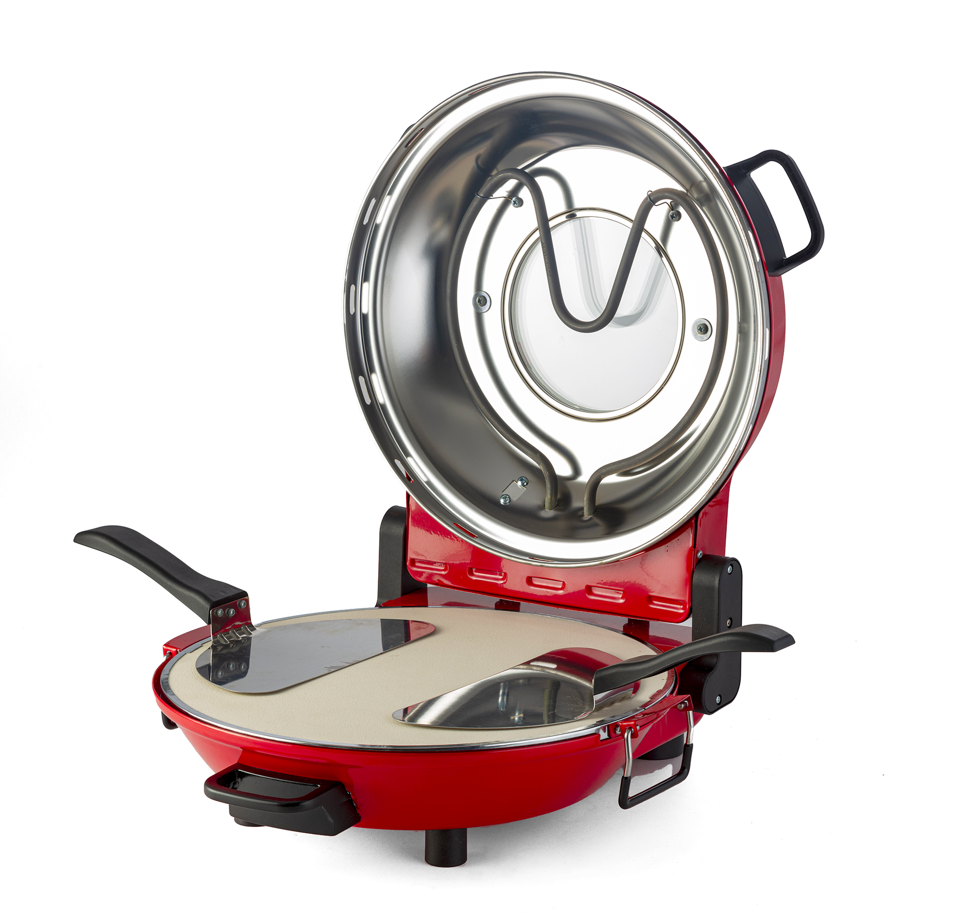 Elemento essenziale è la piastra in pietra refrattaria che assorbe l’umidità e dona croccantezza. La piastra è dotata di due maniglie per essere comodamente rimossa dal forno e portata direttamente a tavola. L’articolo è predisposto con timer, 5 livelli di temperatura e due prese in nylon per spostare il fornetto in qualsiasi momento. Utilissima è la finestra in vetro temperato che consente di vedere il livello di cottura e decidere quando è il momento giusto, senza aprire il forno. La confezione contiene due pratiche palette in acciaio inox utilissime sia per “infornare” che per servire.