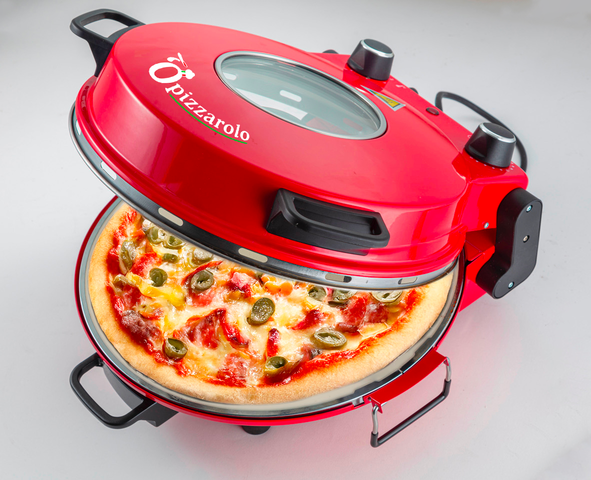 Il fornetto ‘O Pizzarolo è lo strumento ideale per la cottura di pizze e lievitati perché replica in poco spazio le caratteristiche del forno a legna. Ha due resistenze, una superiore e una inferiore, che in poco tempo portano la temperatura a 400 gradi.