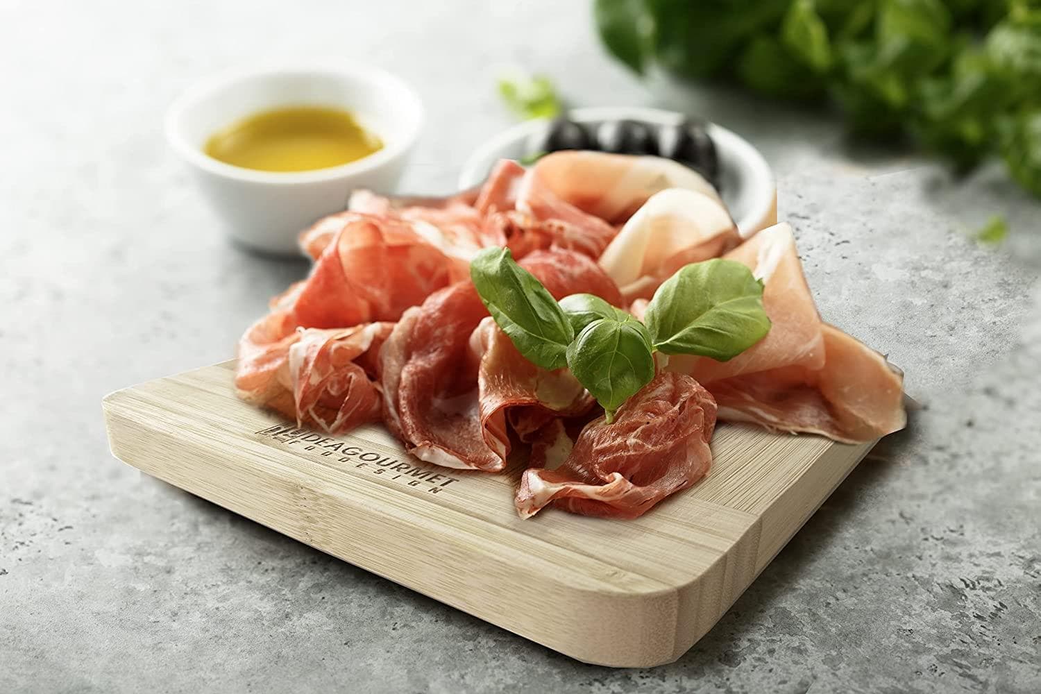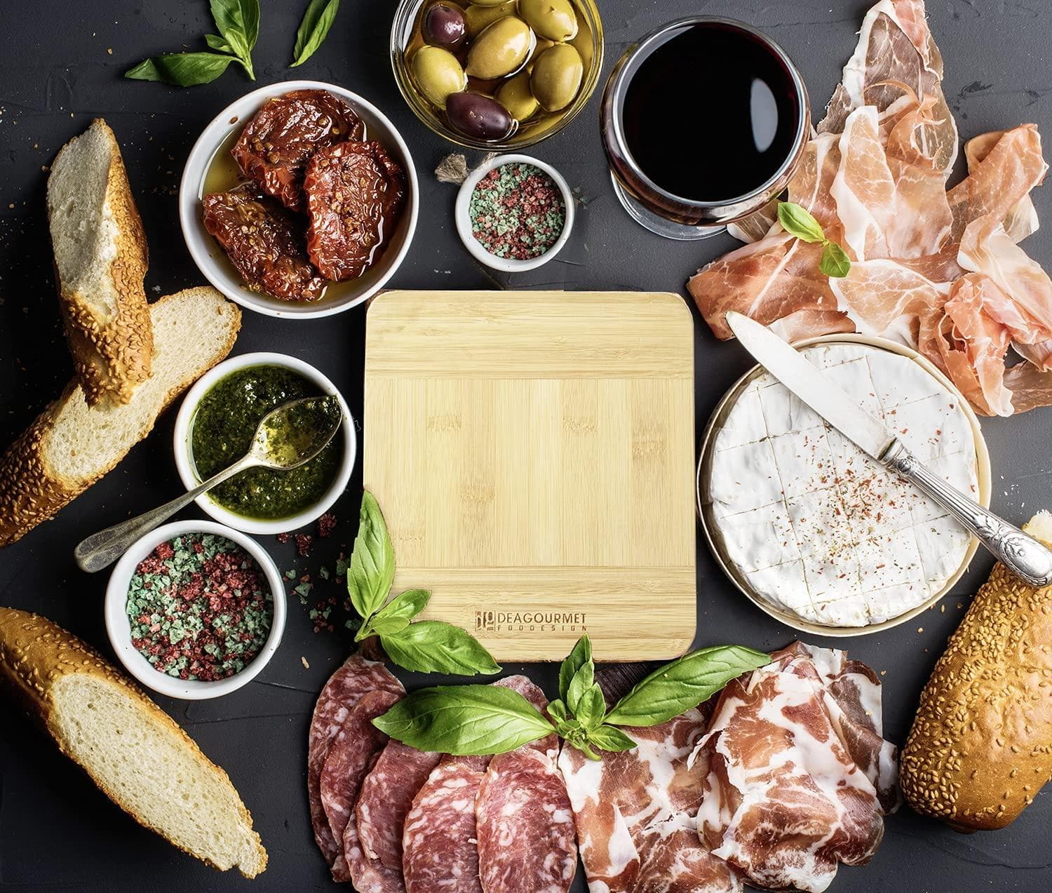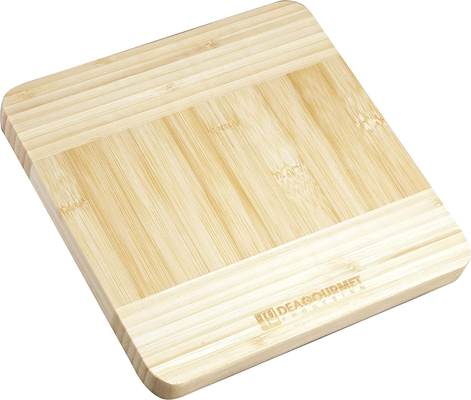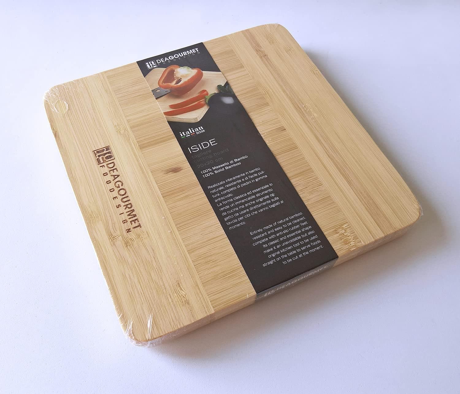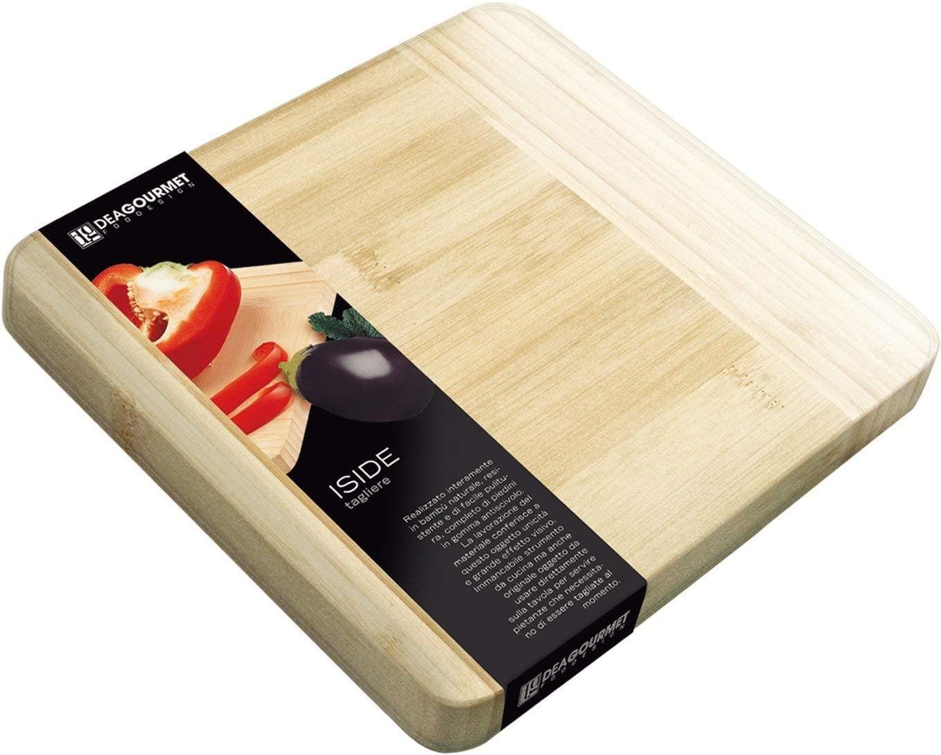 - ISIDE Deagourmet di Foodesign è il tagliere con la duplice funzione di tagliare e servire direttamente in tavola. Il tagliere presenta una forma quadrata stondata, ed è formato da tre fasce di listelli di bambù naturale orientati diversamente. Il rialzo creatosi grazie ai piedini gommati rende più agevole la presa del tagliere ma soprattutto lo rendono stabile e aderente al piano d’appoggio.