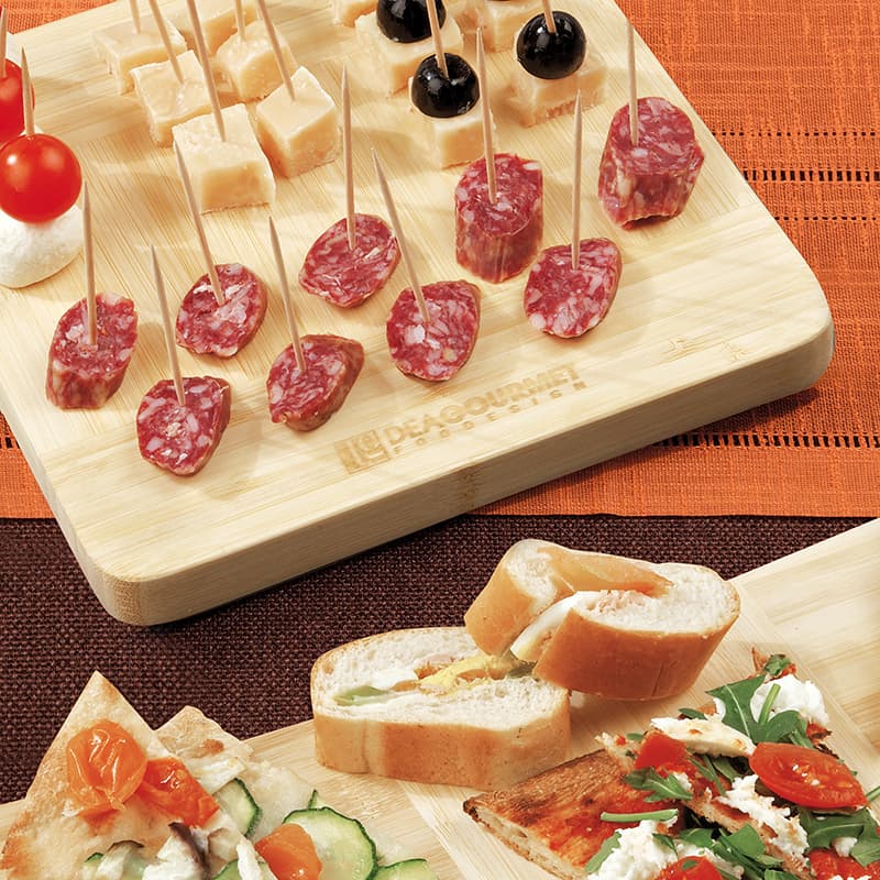 - ISIDE Deagourmet di Foodesign è il tagliere con la duplice funzione di tagliare e servire direttamente in tavola. Il tagliere presenta una forma quadrata stondata, ed è formato da tre fasce di listelli di bambù naturale orientati diversamente. Il rialzo creatosi grazie ai piedini gommati rende più agevole la presa del tagliere ma soprattutto lo rendono stabile e aderente al piano d’appoggio.
