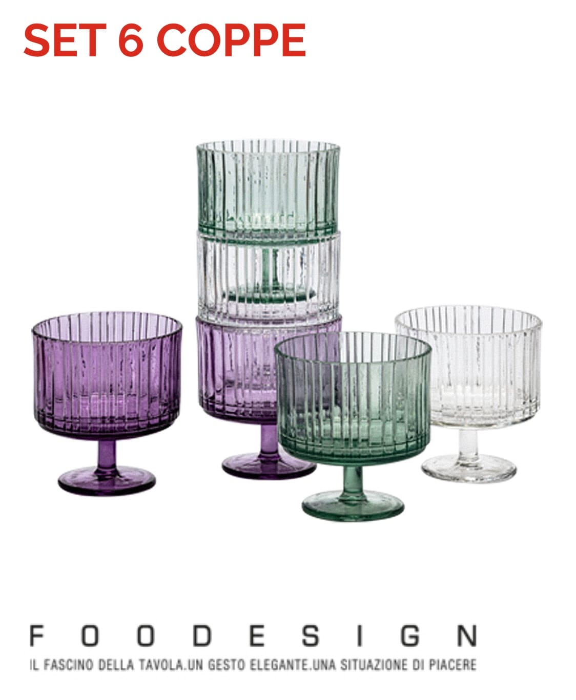 La particolarità di queste coppe con stelo è la sua impilabilità che rende il prodotto salvaspazio.