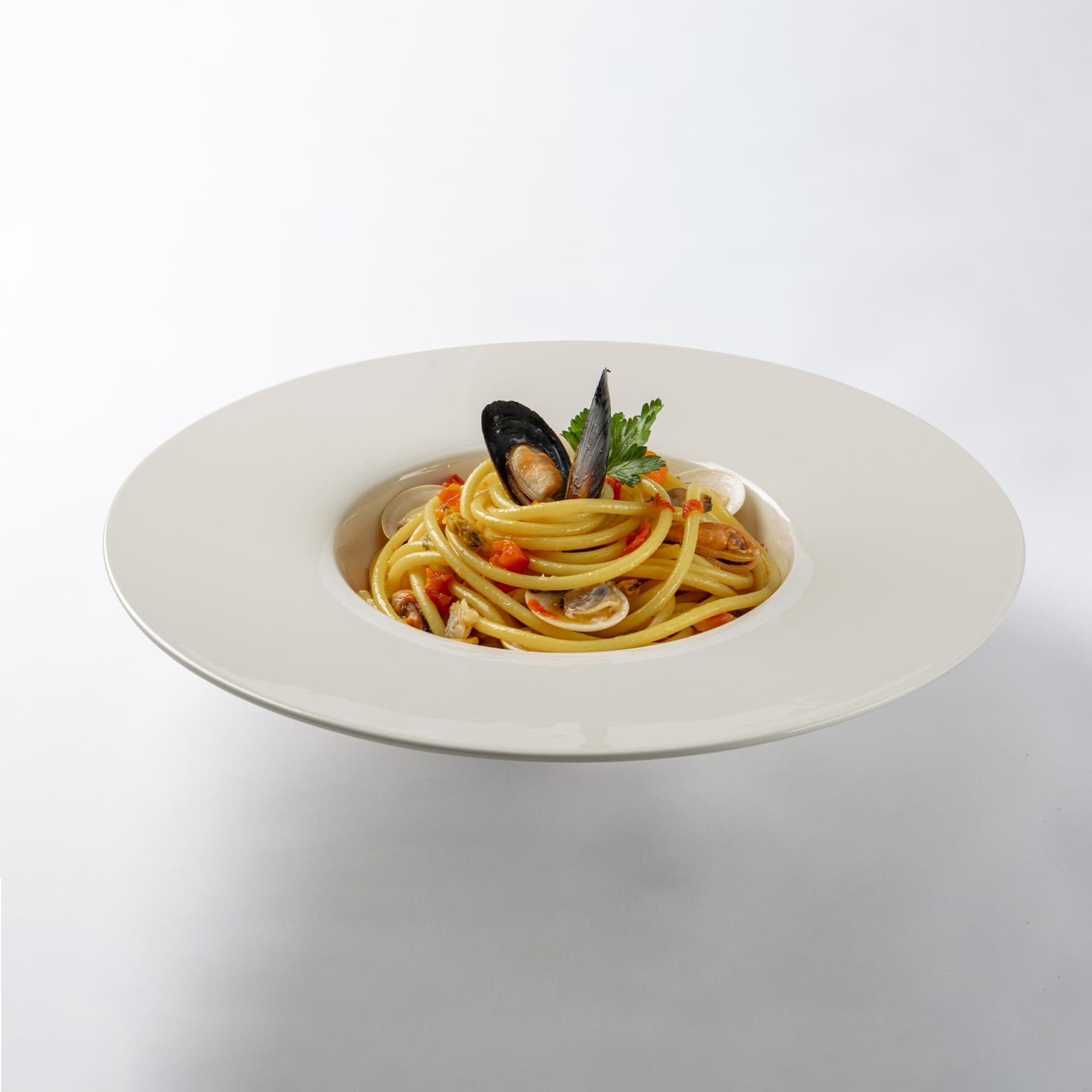 Il piatto Sfera è in realtà un classico della migliore ristorazione che viene però utilizzato in modo crescente nella più moderna presentazione delle pietanze. Si caratterizza per avere ampi bordi e zona centrale sferica che è adatta a contenere la perfetta porzione di pasta.