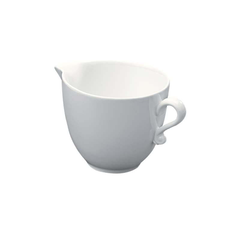 Lattiera realizzata in finissima porcellana bianca. Il designer ha deciso di arricchire questo raffinato oggetto ornandolo del particolare motivo a chiocciola che rimanda al passato.